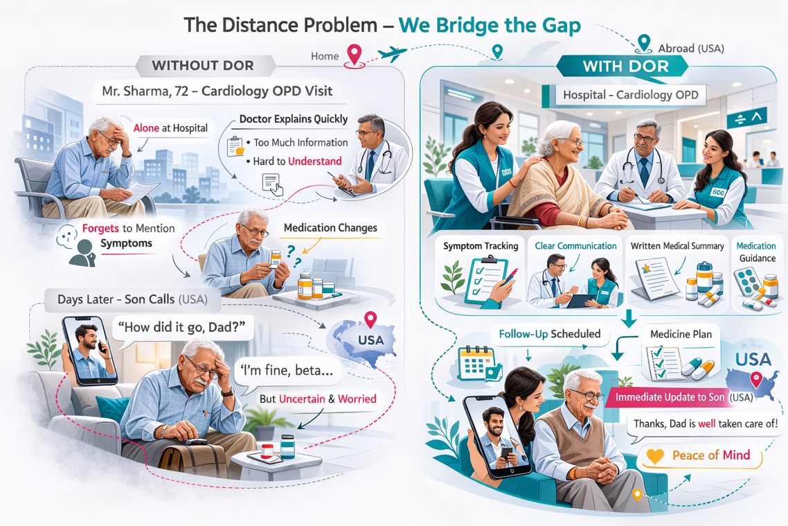 "DOR Care has been a game changer for my parents in India. The peace of mind knowing they are well cared for is priceless."